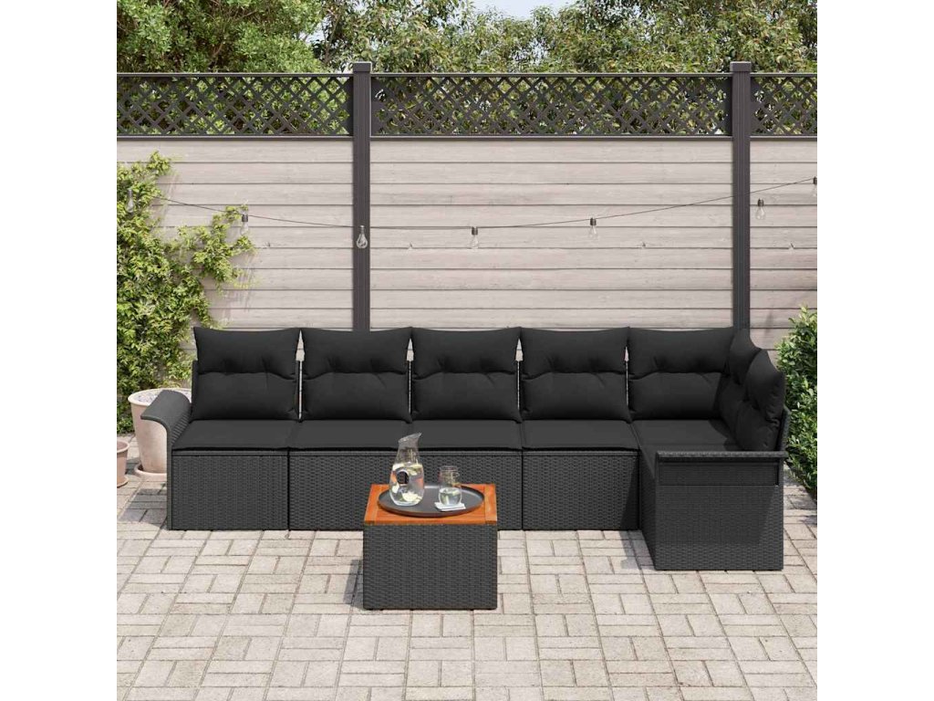Sada zahradních pohovek s polštářem s úložištěm 7 pcs Černá 3356007