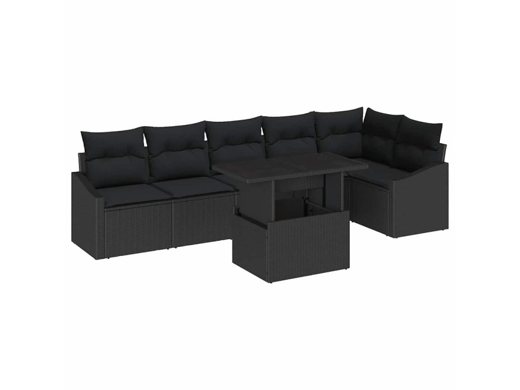 Sada zahradních pohovek s polštářem s úložištěm 7 pcs Černá 3357756