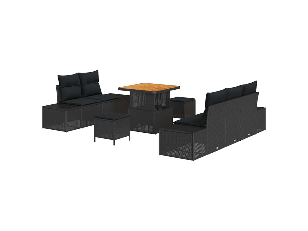 Sada zahradních pohovek s polštářem s úložištěm 8 pcs Černá 3364674