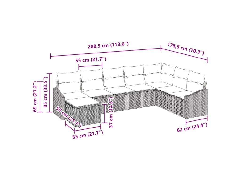 Sada zahradních pohovek s polštářem s úložištěm 8 pcs polyratan 3359329