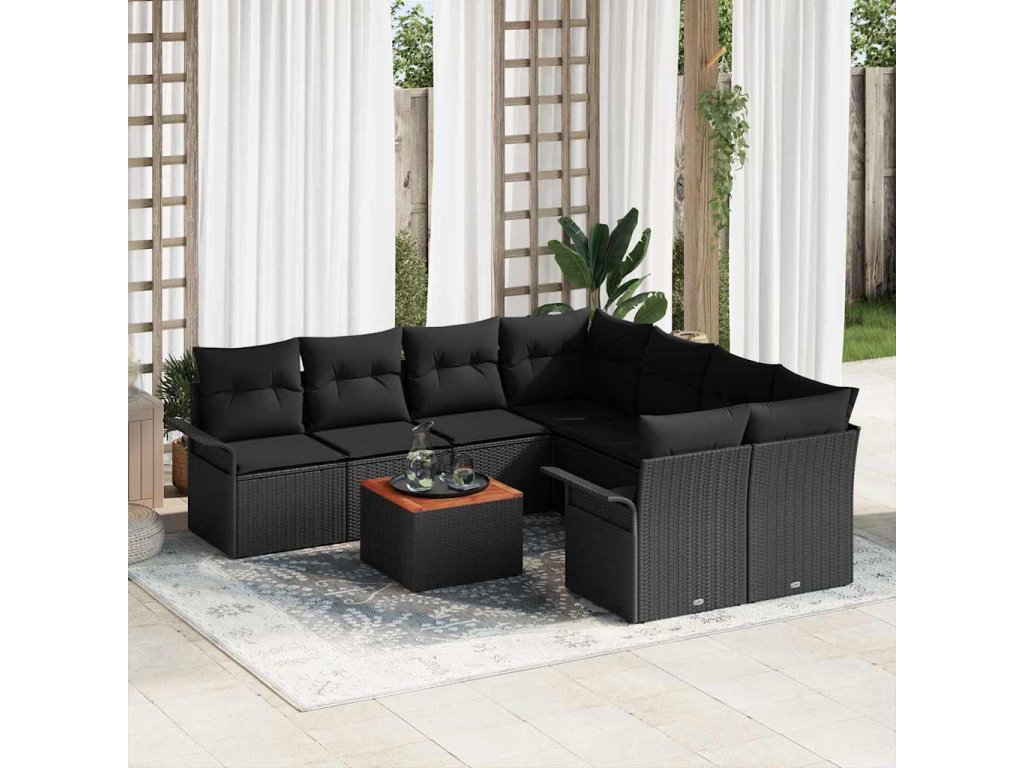 Sada zahradních pohovek s polštářem s úložištěm 9 pcs Černá 3355979