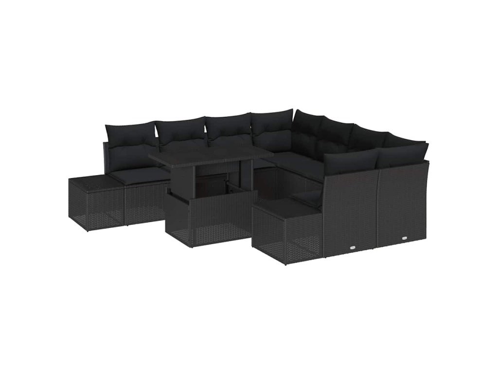 Sada zahradních pohovek s polštářem s úložištěm 9 pcs Černá 3357896