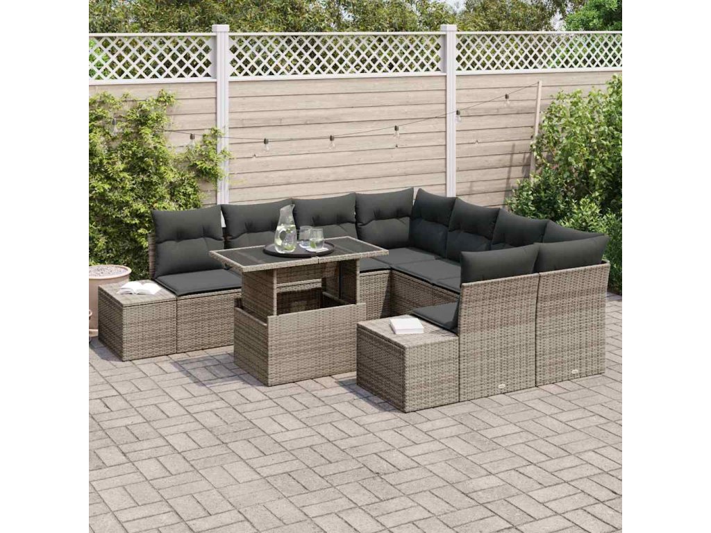 Sada zahradních pohovek s polštářem s úložištěm 9 pcs Šedá 3357892