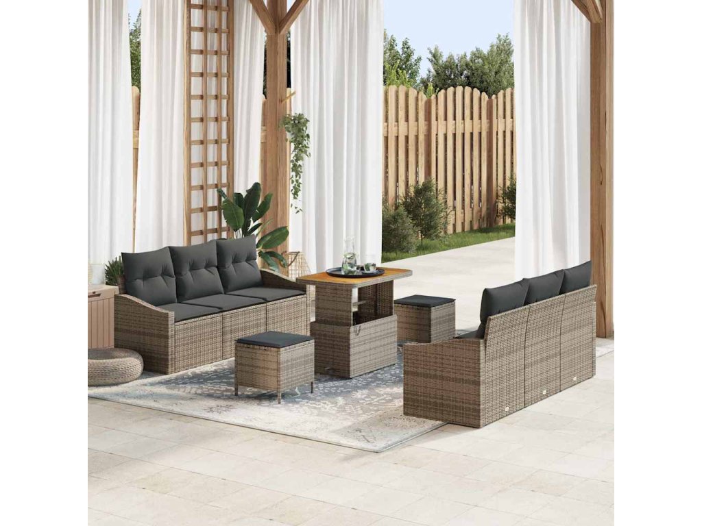 Sada zahradních pohovek s polštářem s úložištěm 9 pcs Šedá 3364563