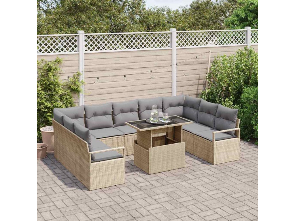 Sada zahradních pohovek s úložištěm 10 pcs Béžová Poly ratan 3357623