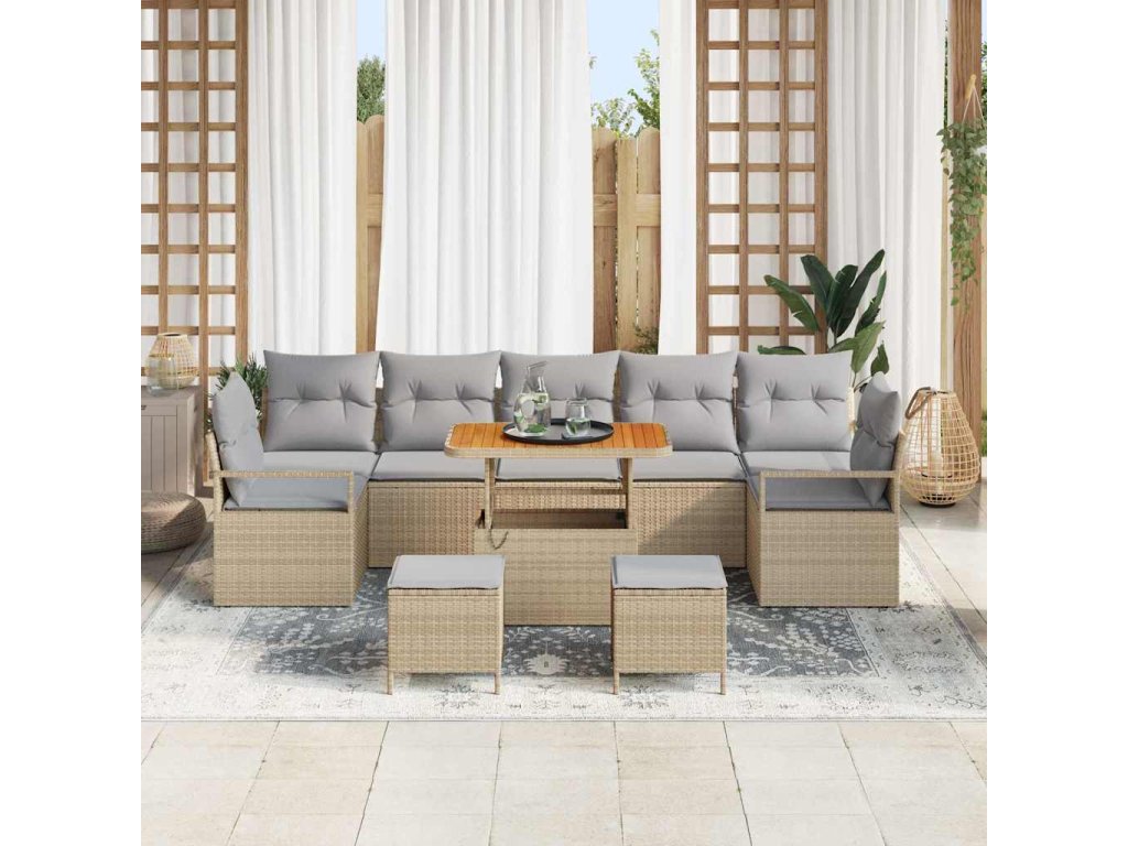 Sada zahradních pohovek s úložištěm 10 pcs Béžová Poly ratan 3362512