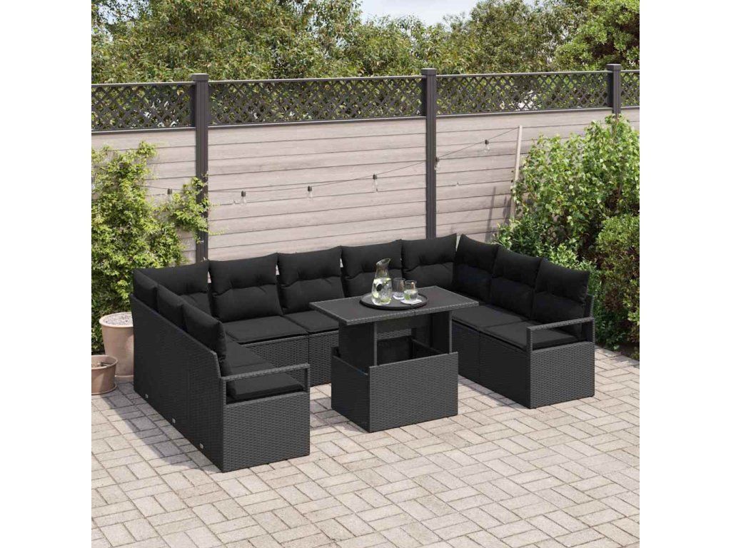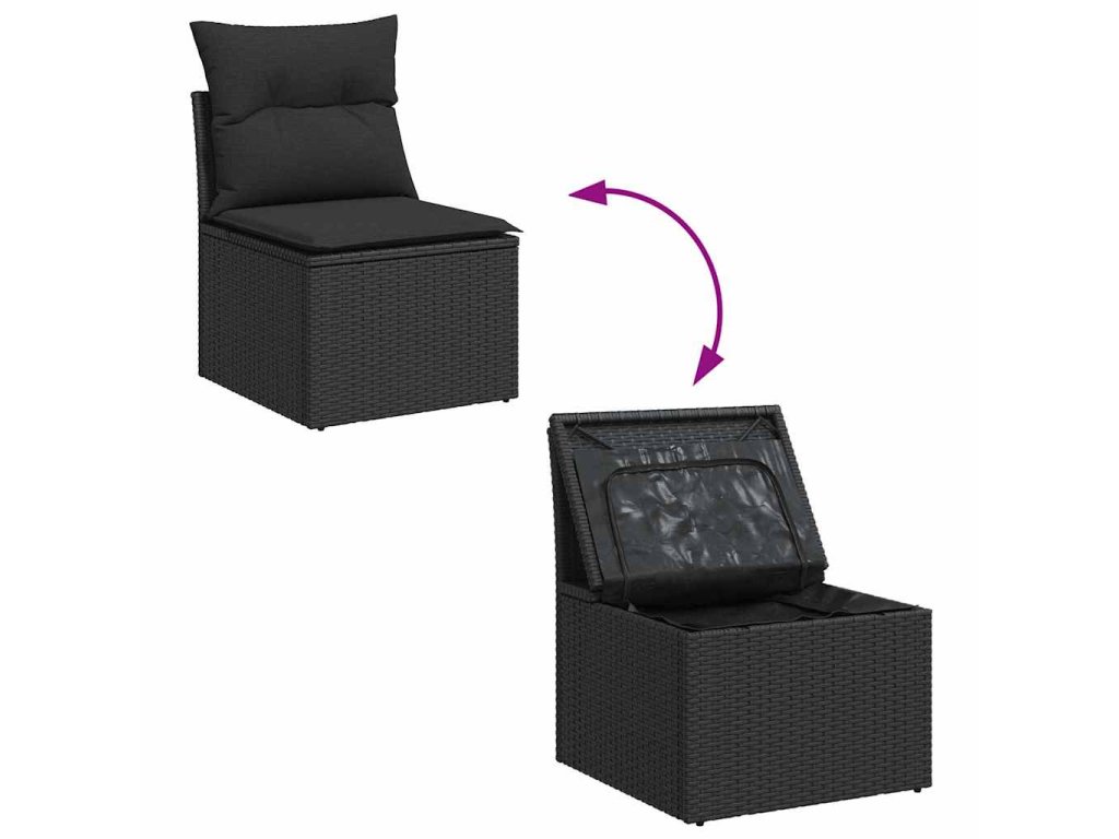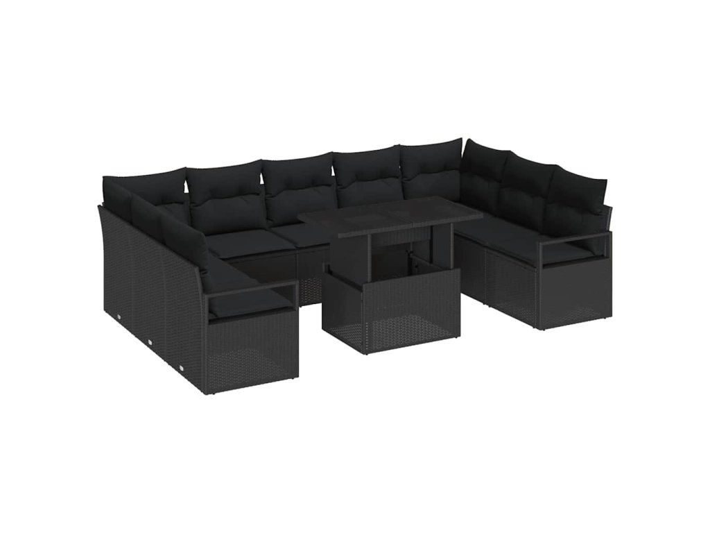 Sada zahradních pohovek s úložištěm 10 pcs Černá Poly ratan 3357626