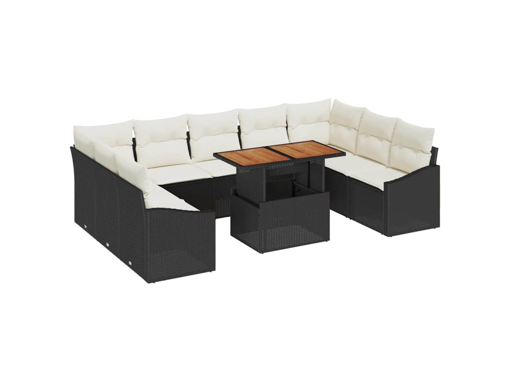 Sada zahradních pohovek s úložištěm 10 pcs Černá Poly ratan 3358616