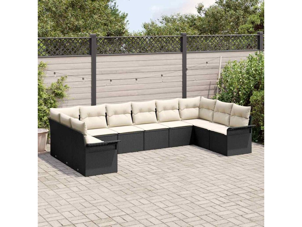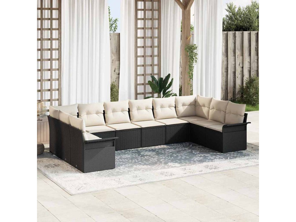 Sada zahradních pohovek s úložištěm 10 pcs Černá polyratan 3354206
