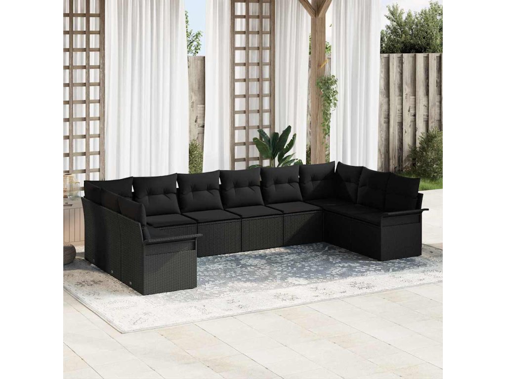 Sada zahradních pohovek s úložištěm 10 pcs Černá polyratan 3354212