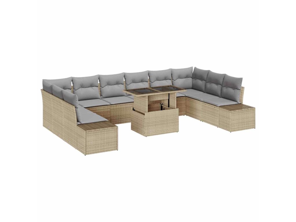 Sada zahradních pohovek s úložištěm 11 pcs Béžová Poly ratan 3357993