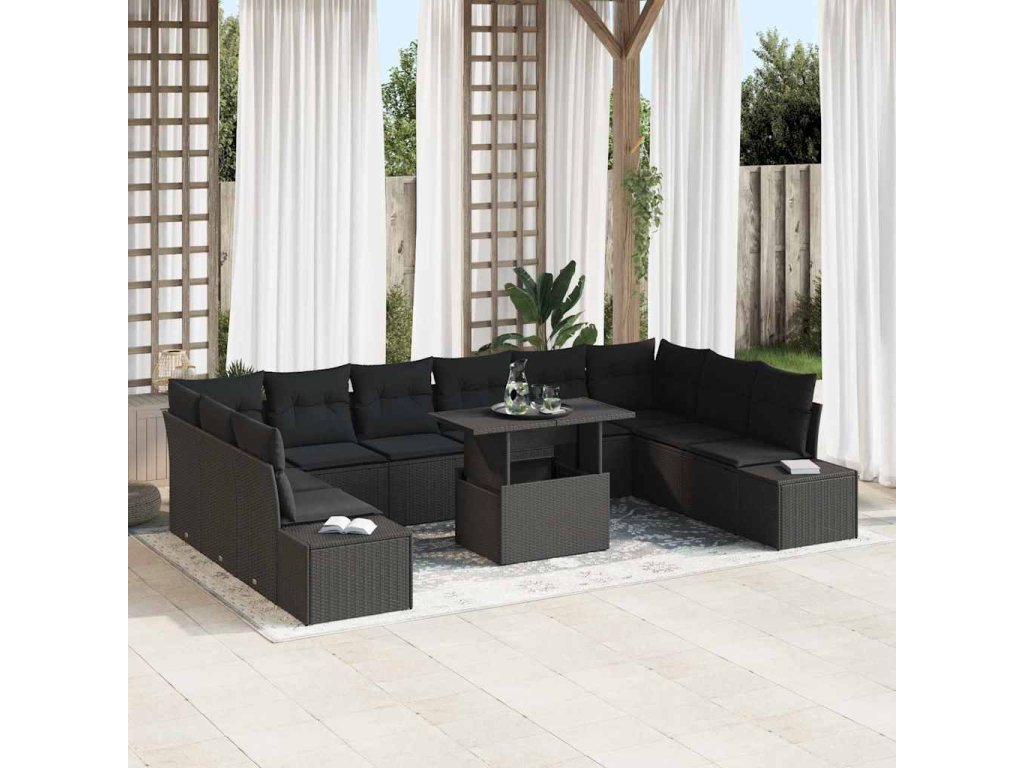 Sada zahradních pohovek s úložištěm 11 pcs Černá Poly ratan 3357996