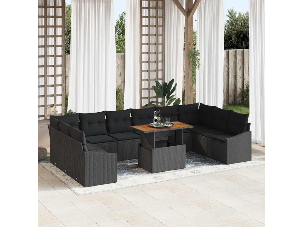 Sada zahradních pohovek s úložištěm 11 pcs Černá Poly ratan 3358627