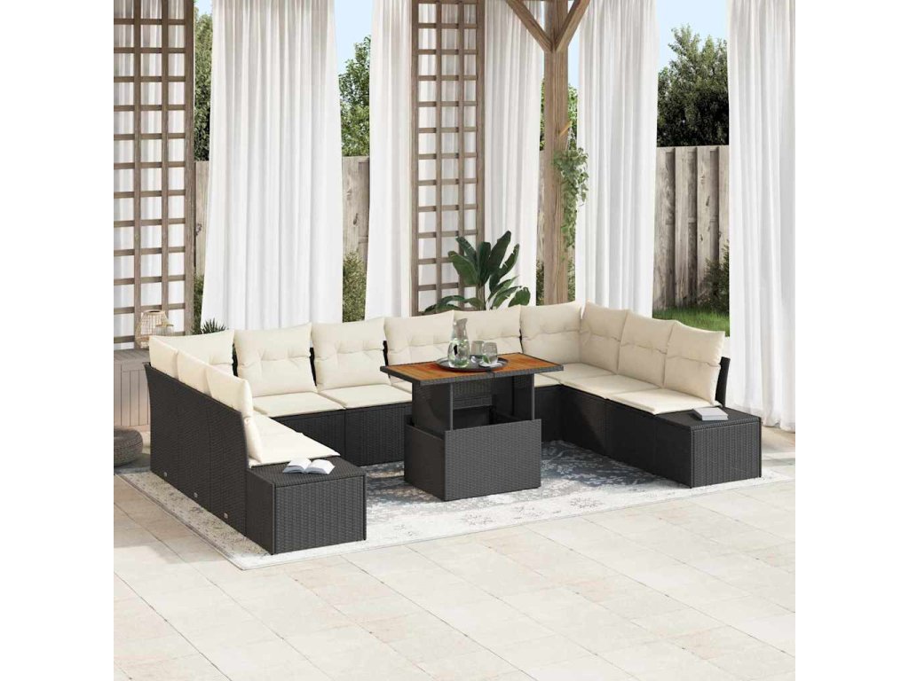 Sada zahradních pohovek s úložištěm 11 pcs Černá Poly ratan 3358749