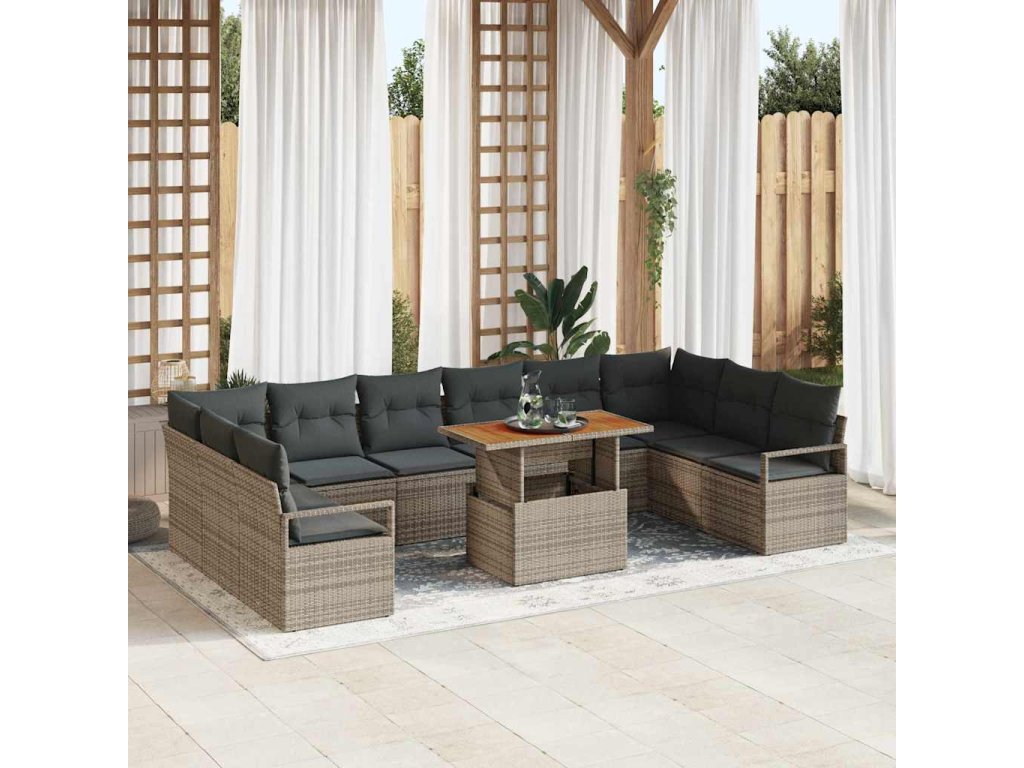 Sada zahradních pohovek s úložištěm 11 pcs Šedá Poly ratan 3358498