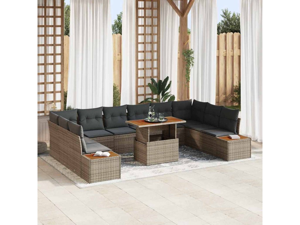 Sada zahradních pohovek s úložištěm 11 pcs Šedá Poly ratan 3358843