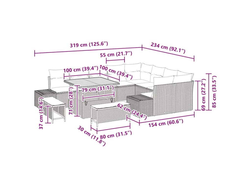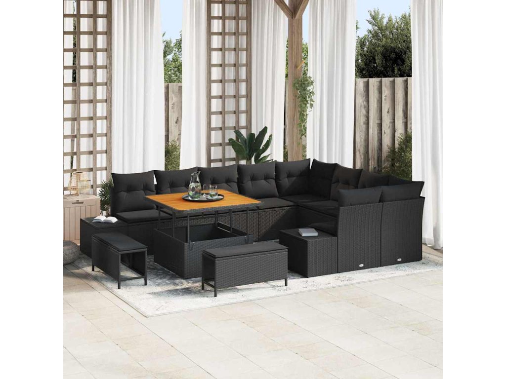 Sada zahradních pohovek s úložištěm 12 pcs Černá Poly ratan 3362814