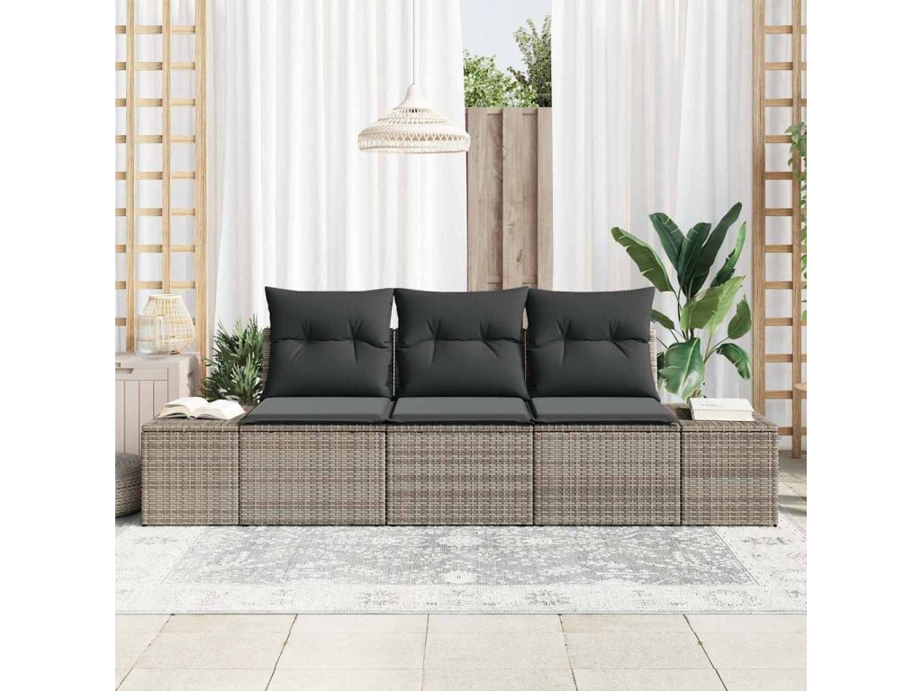 Sada zahradních pohovek s úložištěm 3 pcs Šedá polyratan 3355588
