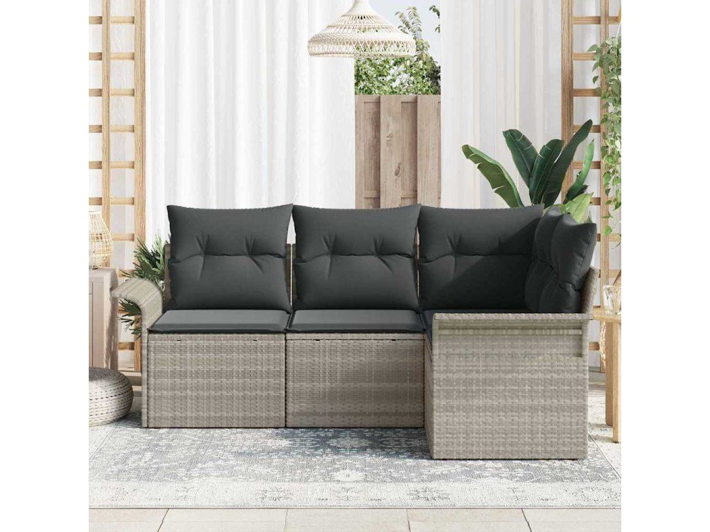 Sada zahradních pohovek s úložištěm 4 pcs Světle šedá polyratan 3354011
