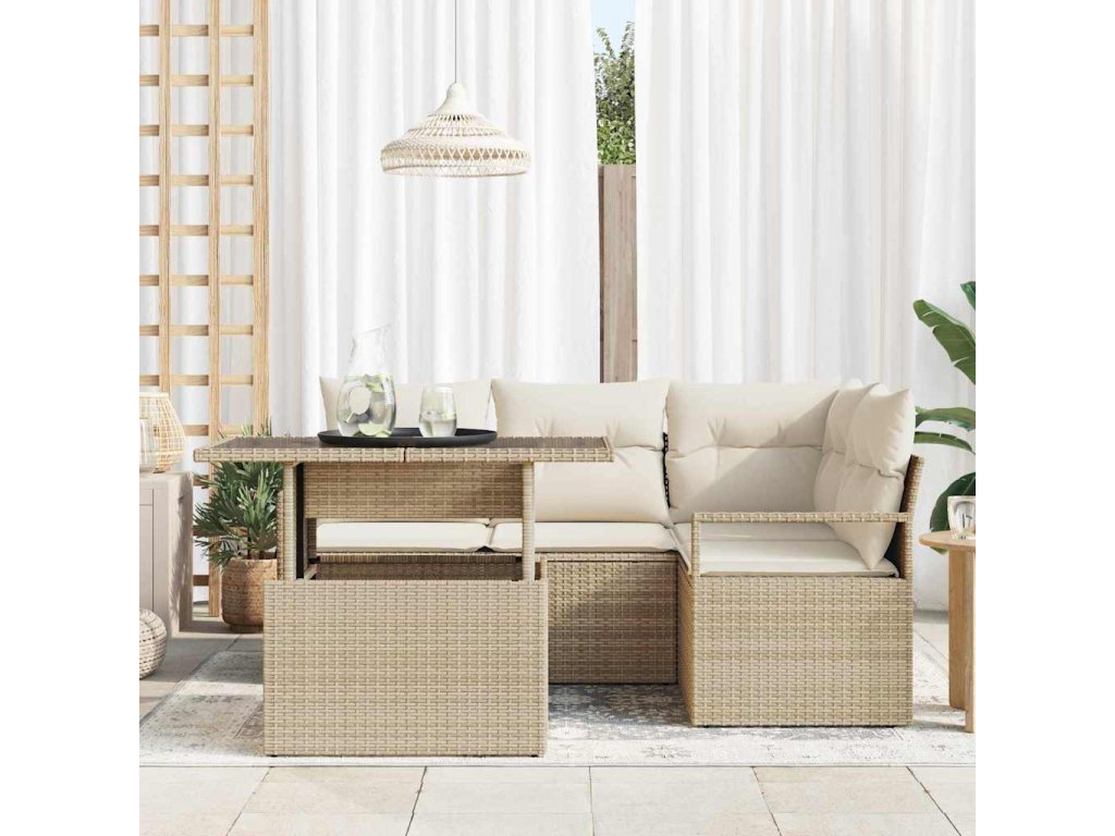 Sada zahradních pohovek s úložištěm 5 pcs Béžová Poly ratan 3357554