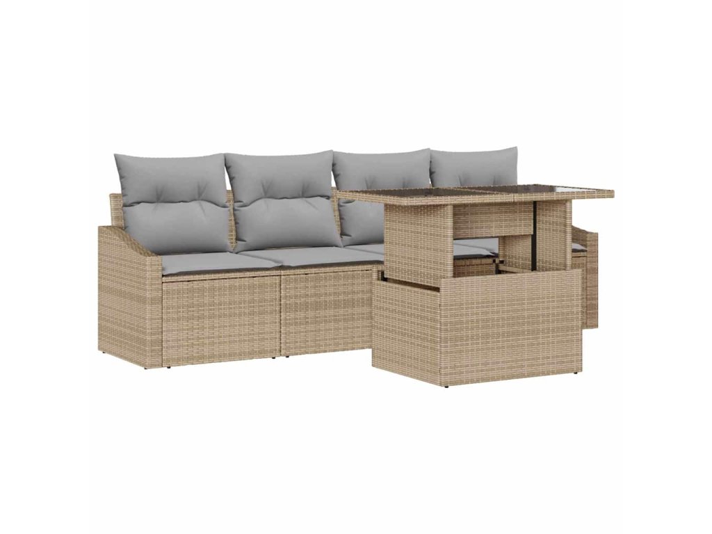 Sada zahradních pohovek s úložištěm 5 pcs Béžová Poly ratan 3357643