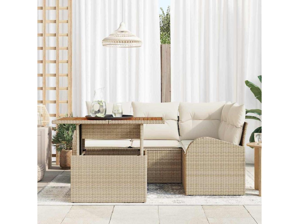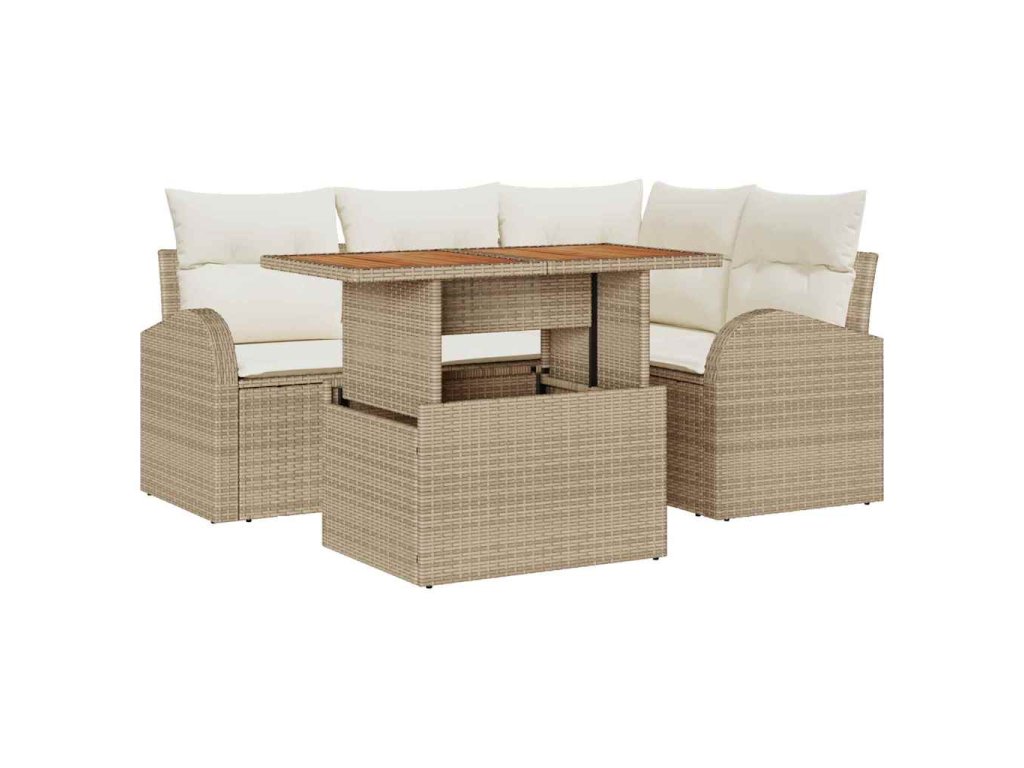 Sada zahradních pohovek s úložištěm 5 pcs Béžová Poly ratan 3358318