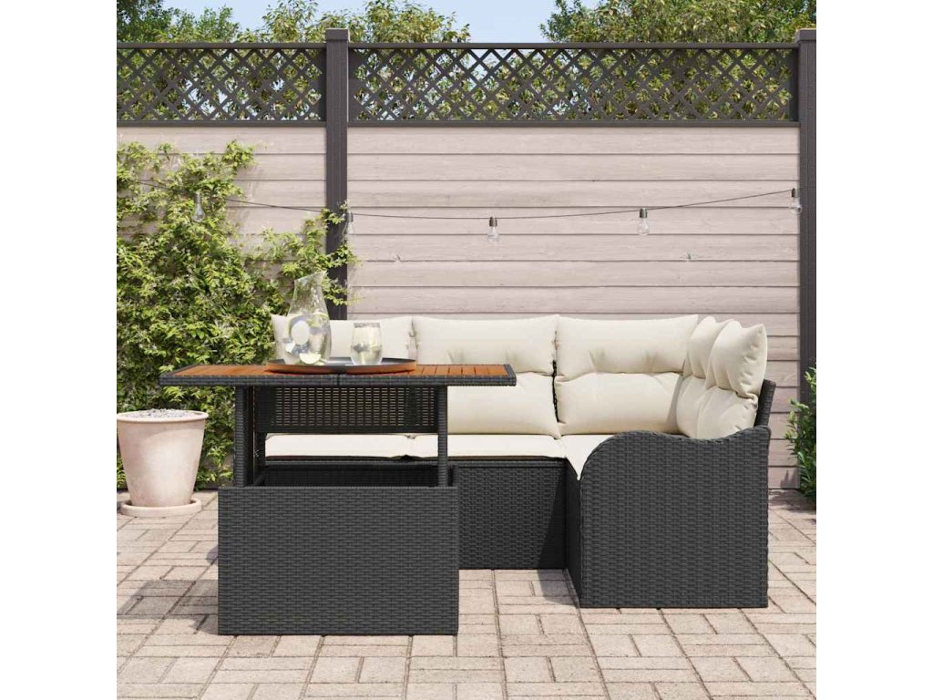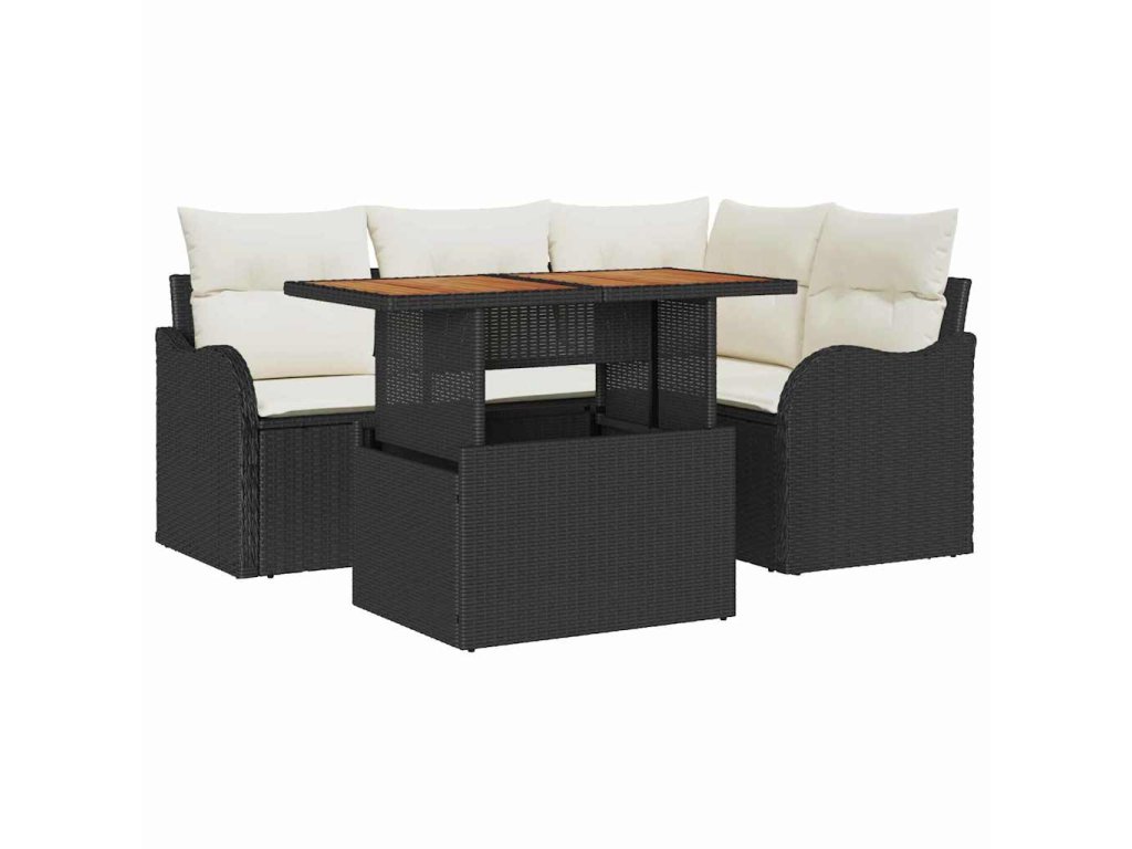 Sada zahradních pohovek s úložištěm 5 pcs Černá Poly ratan 3358189