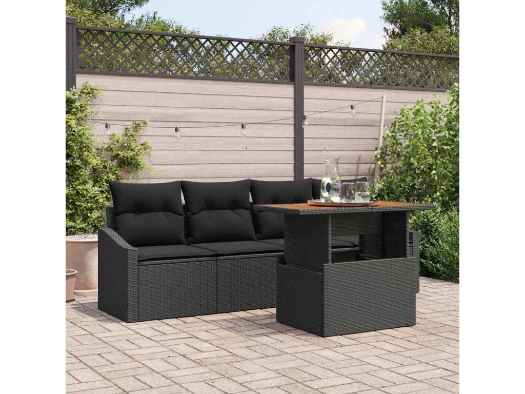 Sada zahradních pohovek s úložištěm 5 pcs Černá Poly ratan 3358508
