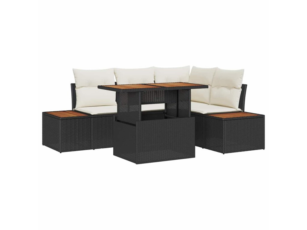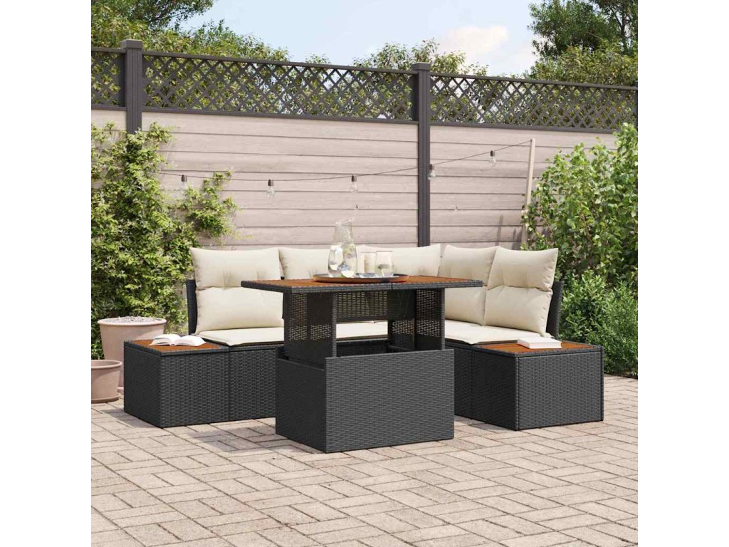 Sada zahradních pohovek s úložištěm 5 pcs Černá Poly ratan 3358801