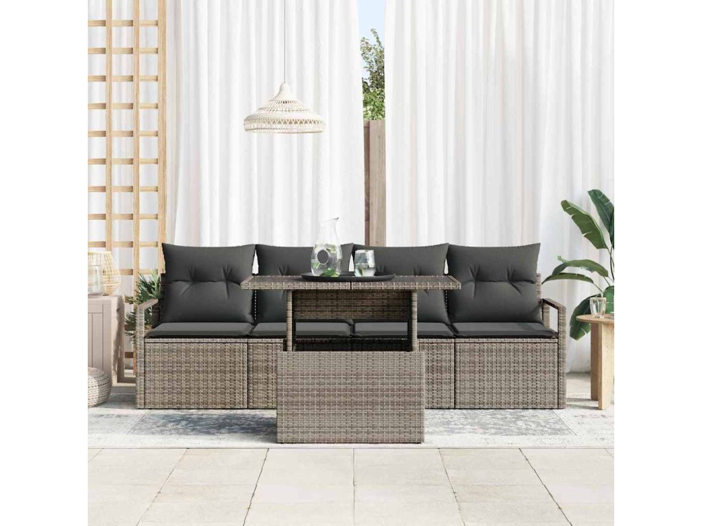 Sada zahradních pohovek s úložištěm 5 pcs Šedá Poly ratan 3357462