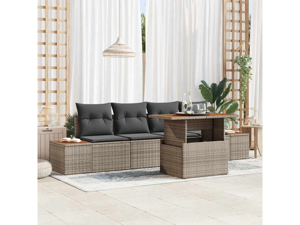 Sada zahradních pohovek s úložištěm 5 pcs Šedá Poly ratan 3358758
