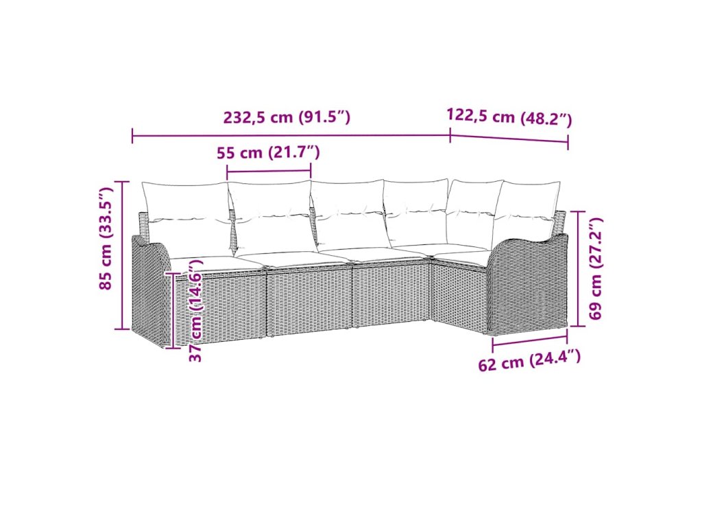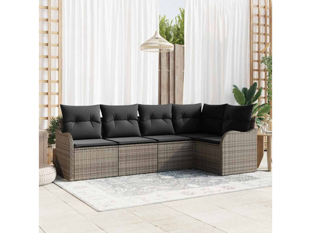 Sada zahradních pohovek s úložištěm 5 pcs Šedá polyratan 3354368