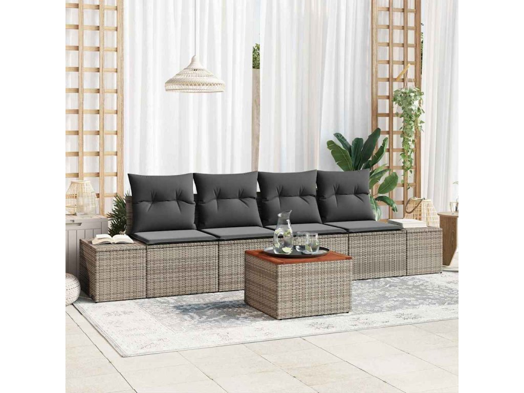 Sada zahradních pohovek s úložištěm 5 pcs Šedá polyratan 3356557