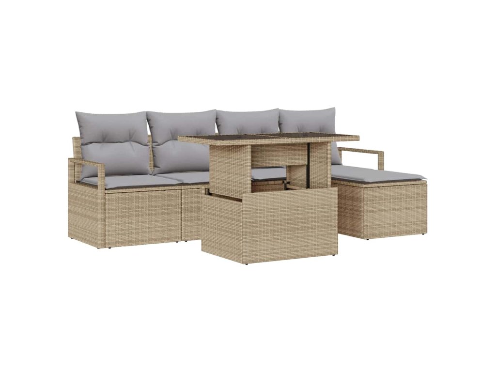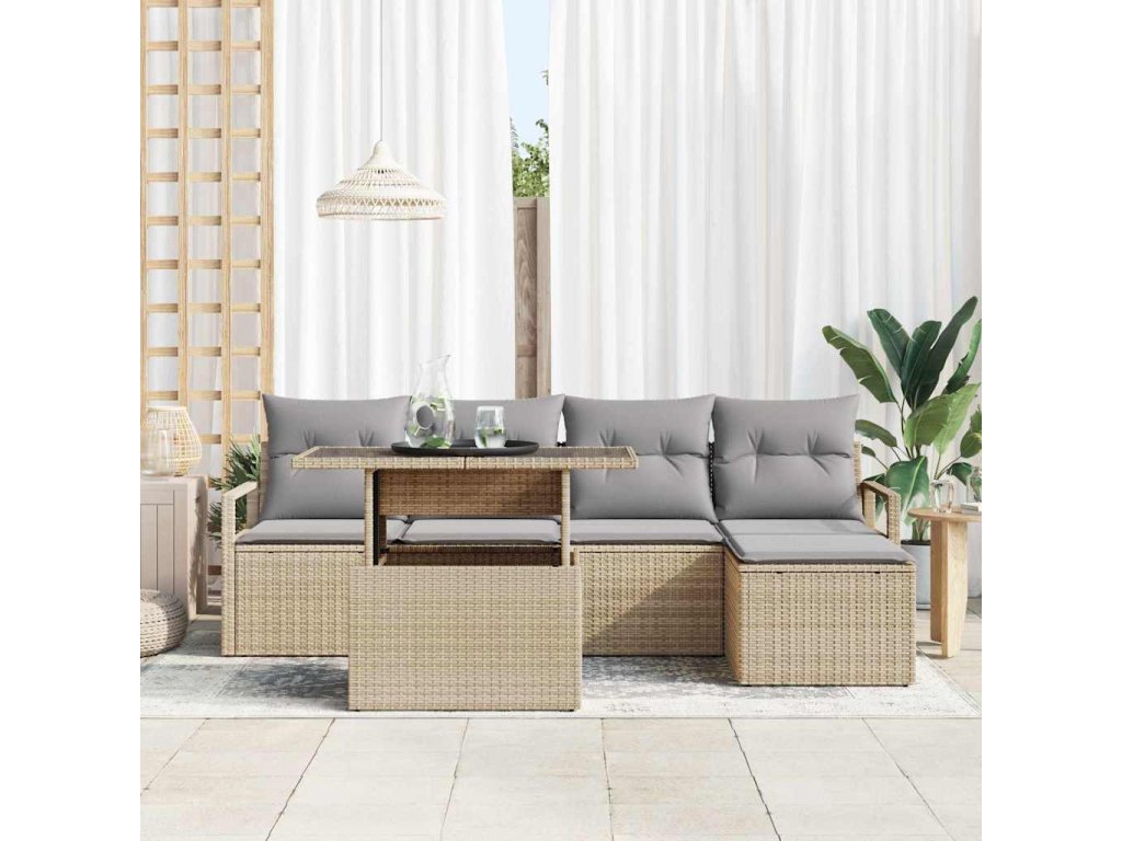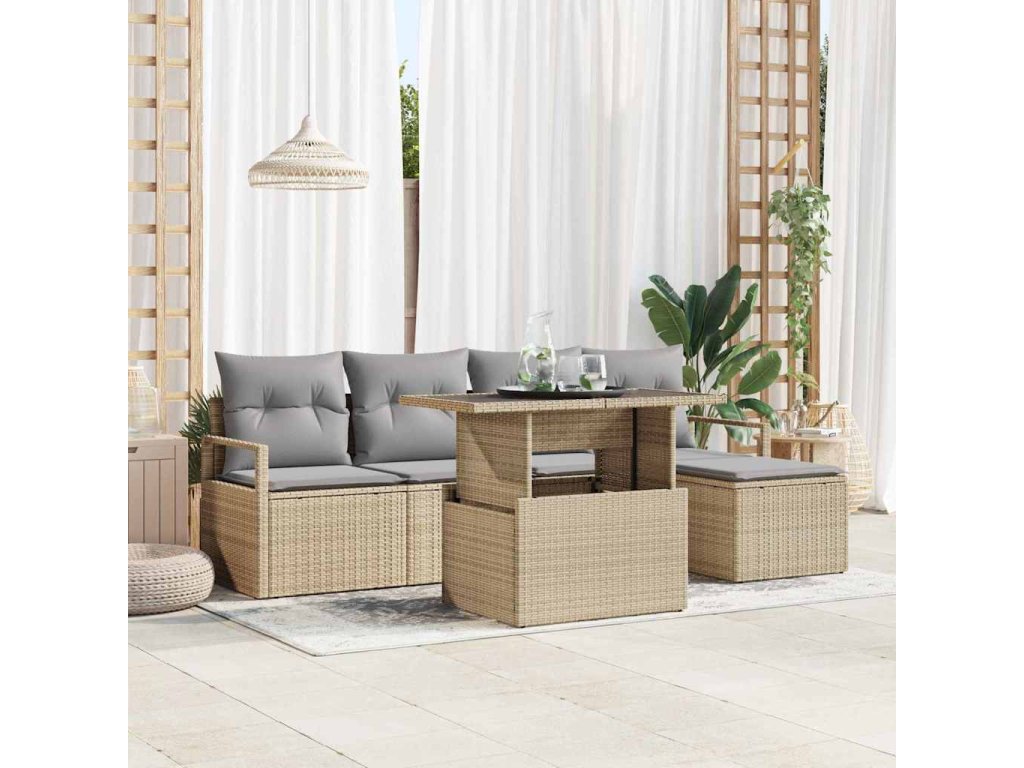Sada zahradních pohovek s úložištěm 6 pcs Béžová Poly ratan 3357543
