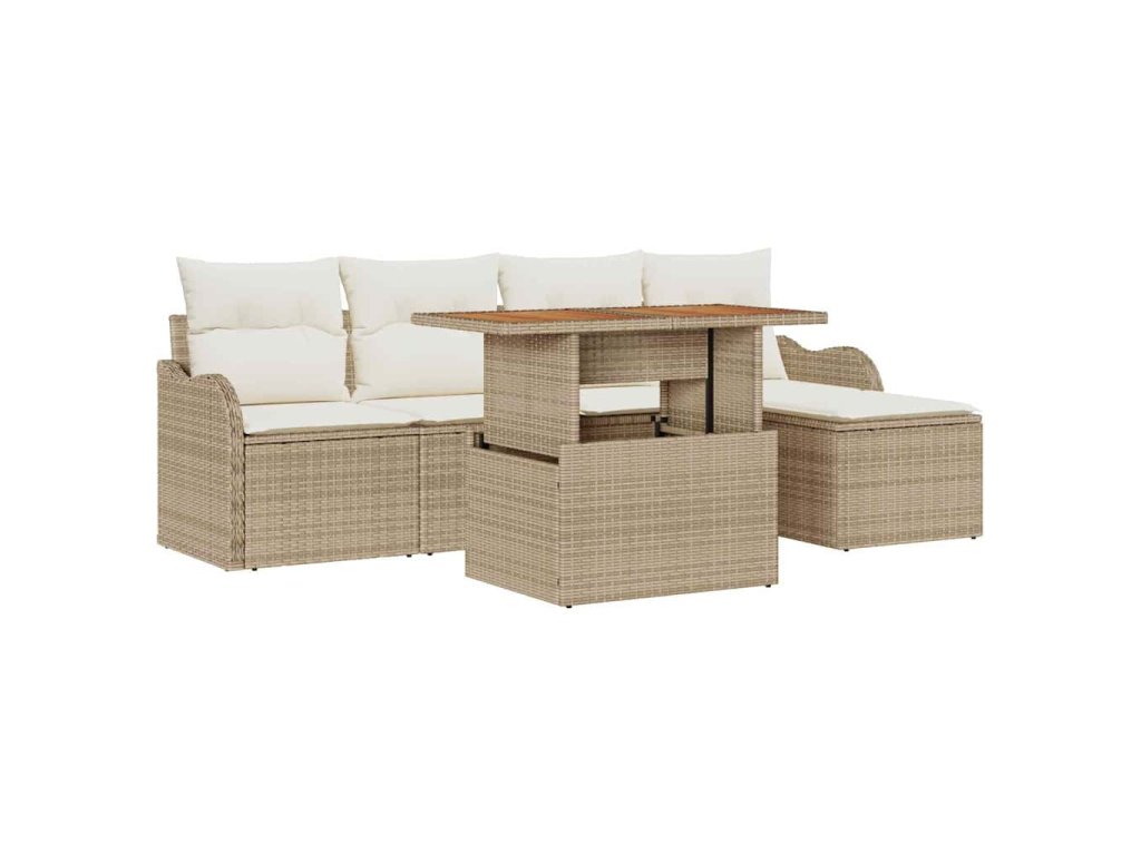 Sada zahradních pohovek s úložištěm 6 pcs Béžová Poly ratan 3358185