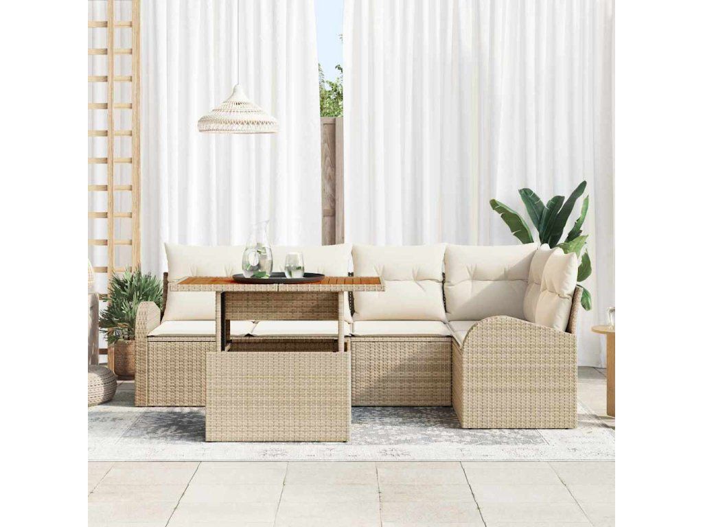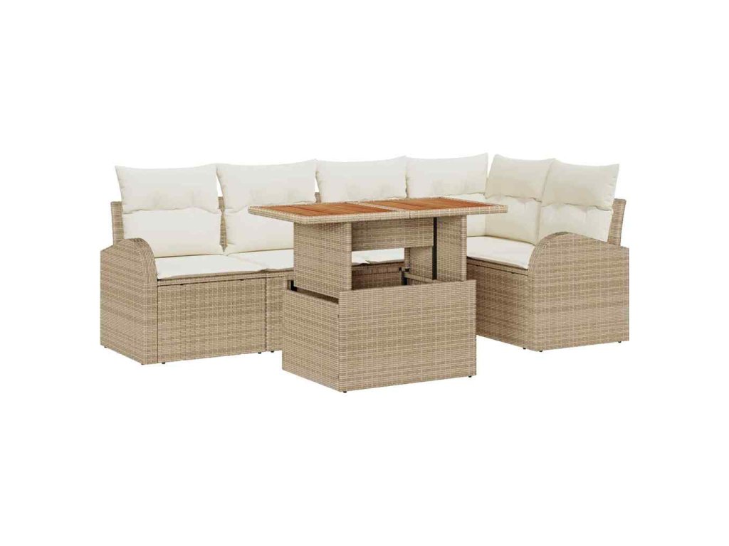 Sada zahradních pohovek s úložištěm 6 pcs Béžová Poly ratan 3358325