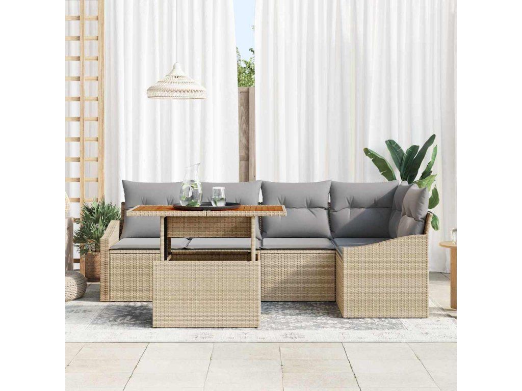 Sada zahradních pohovek s úložištěm 6 pcs Béžová Poly ratan 3358576