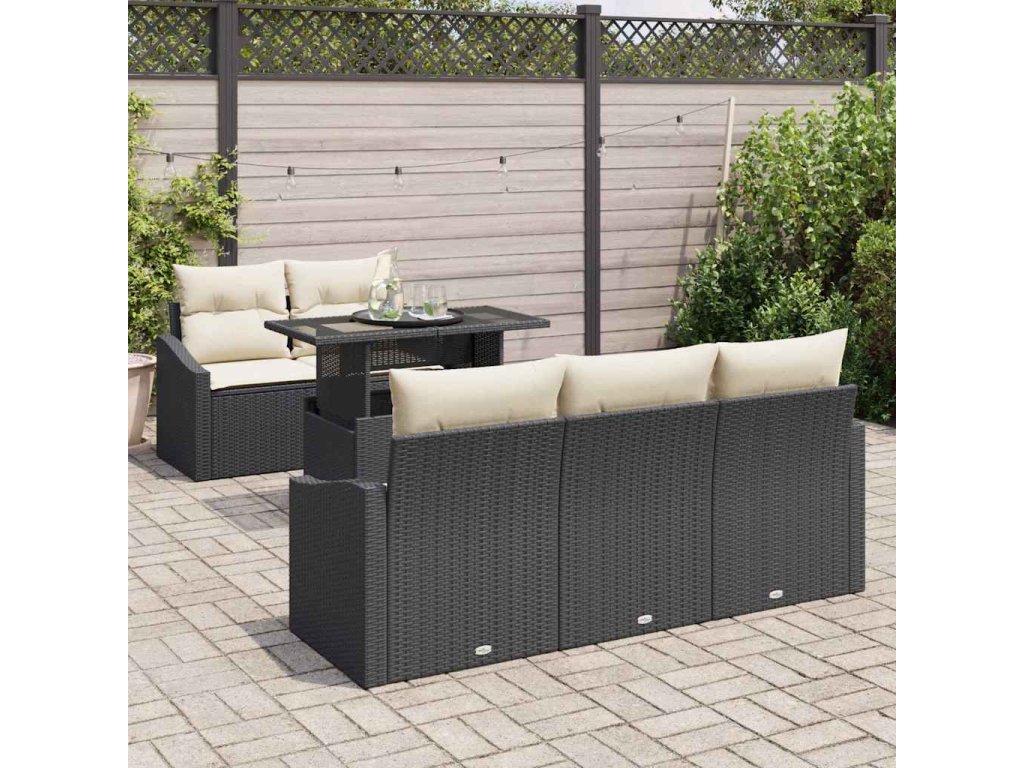 Sada zahradních pohovek s úložištěm 6 pcs Černá Poly ratan 3357650