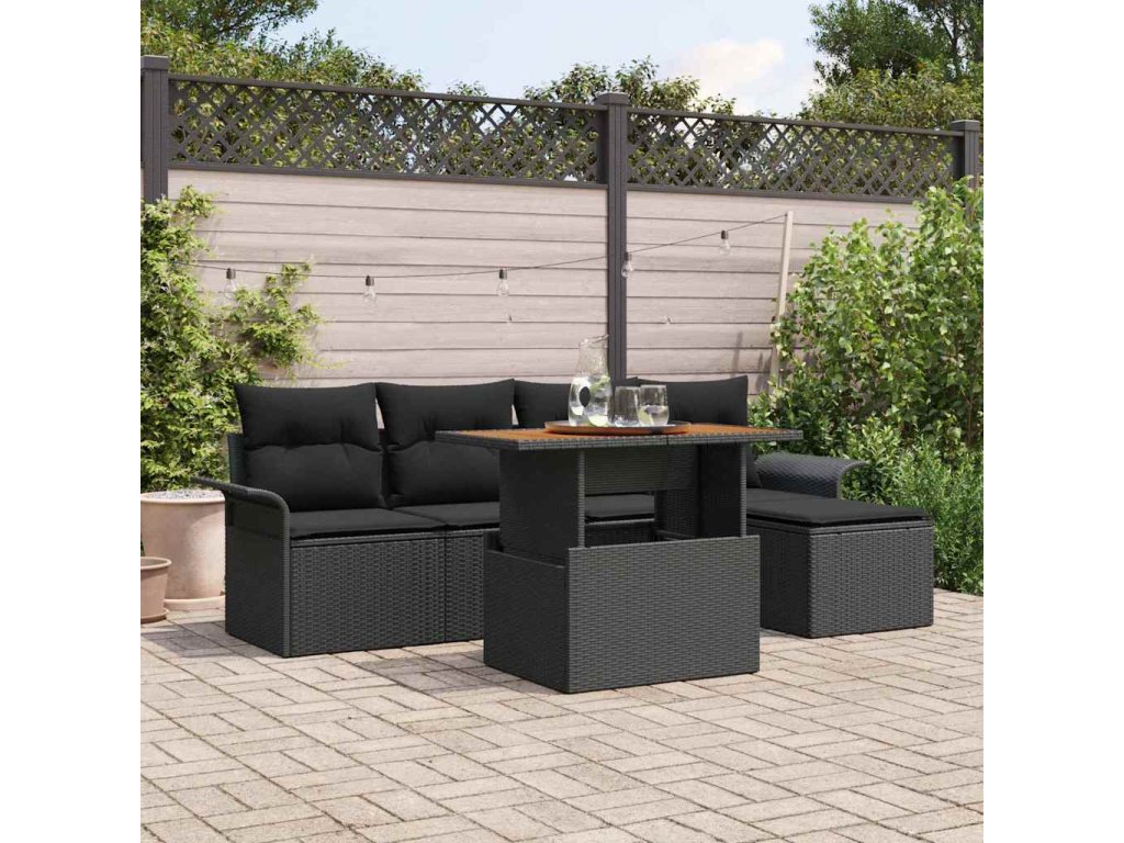 Sada zahradních pohovek s úložištěm 6 pcs Černá Poly ratan 3358060