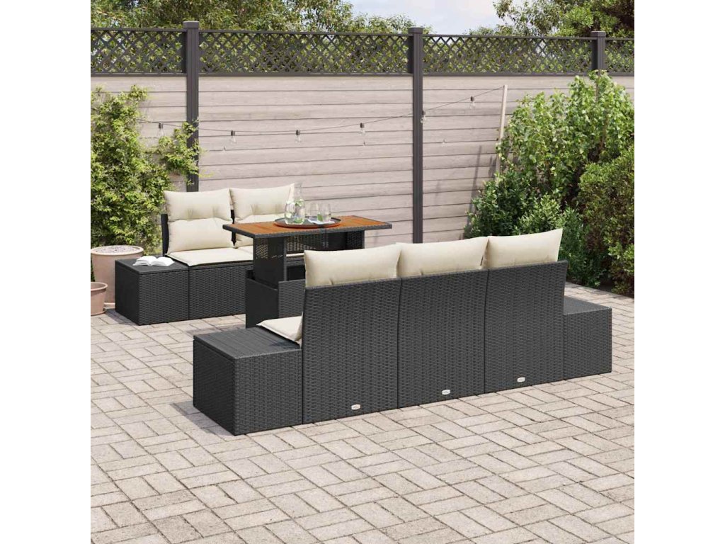 Sada zahradních pohovek s úložištěm 6 pcs Černá Poly ratan 3358637