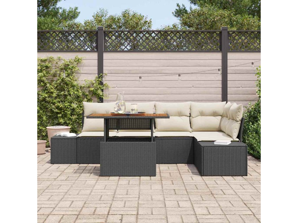 Sada zahradních pohovek s úložištěm 6 pcs Černá Poly ratan 3358700