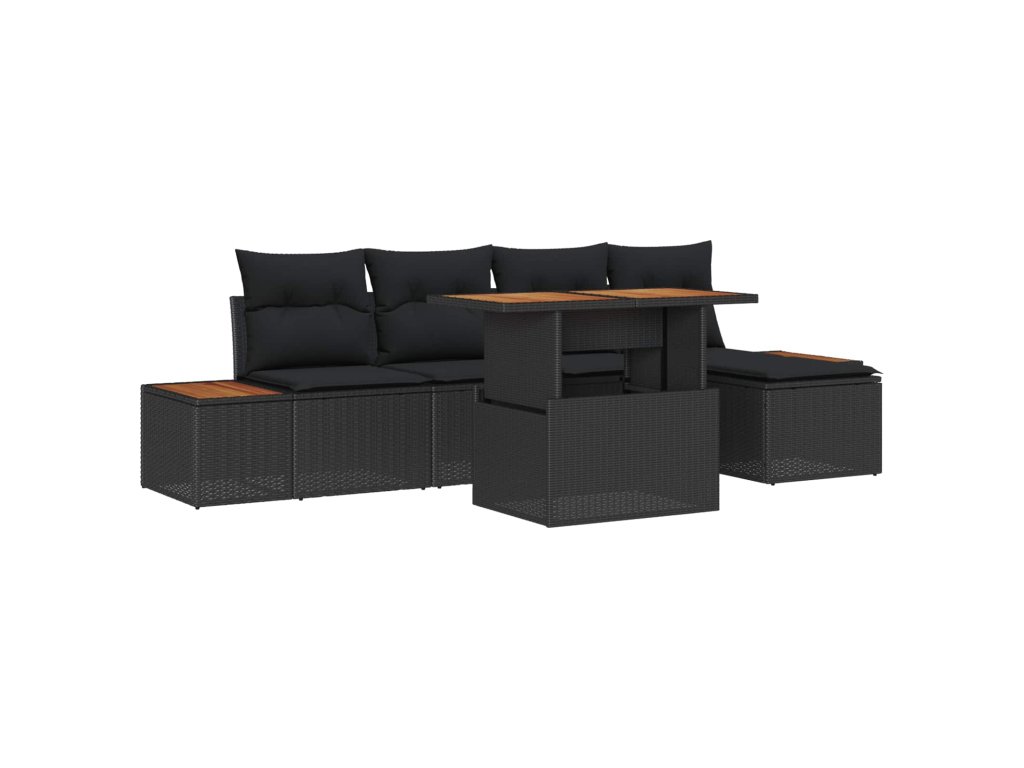 Sada zahradních pohovek s úložištěm 6 pcs Černá Poly ratan 3358797