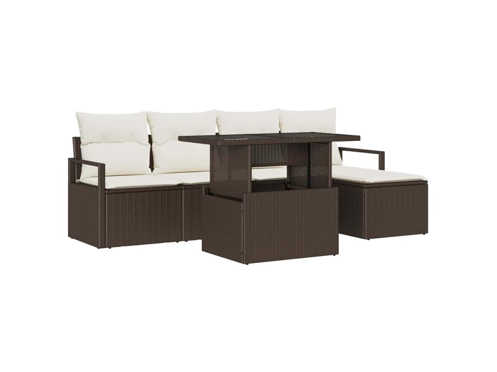 Sada zahradních pohovek s úložištěm 6 pcs Hnědá Poly ratan 3357541
