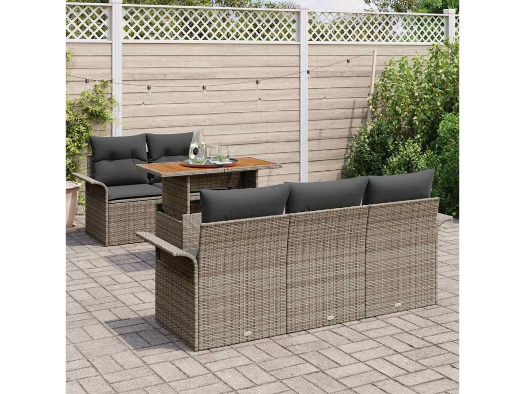 Sada zahradních pohovek s úložištěm 6 pcs Šedá Poly ratan 3358008