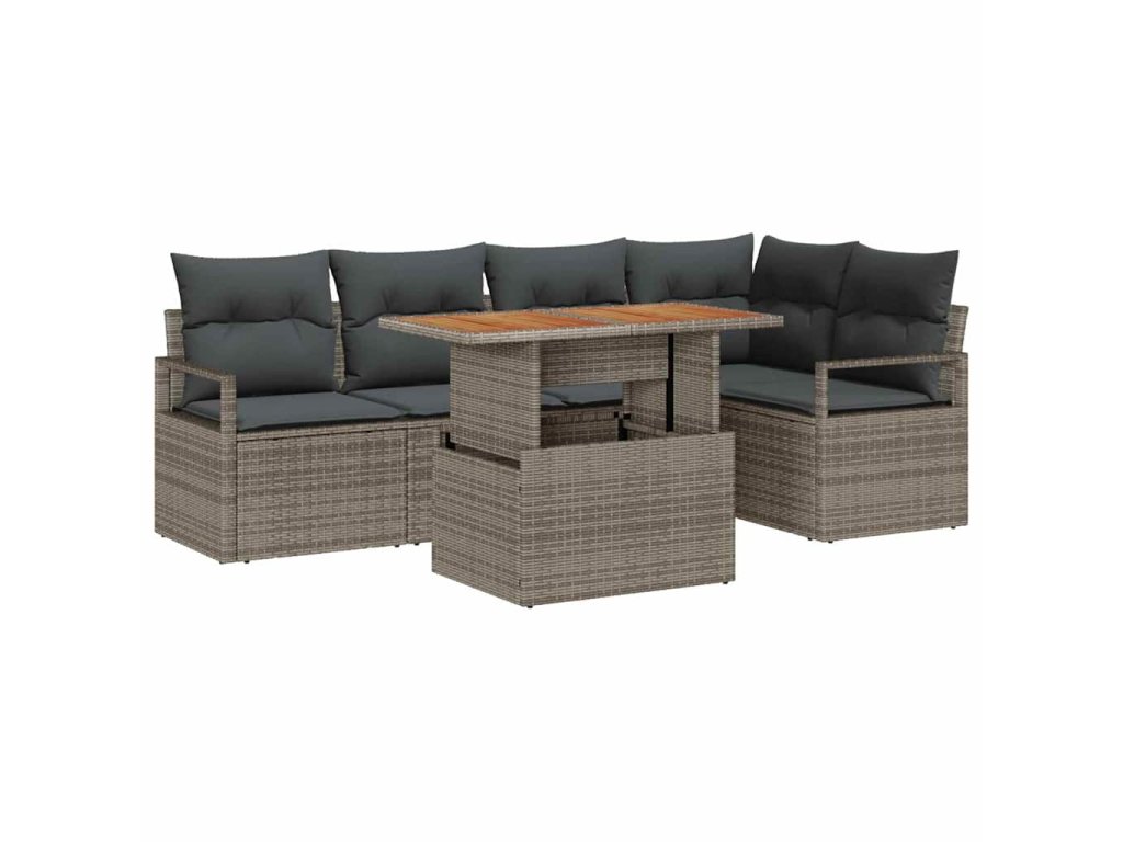 Sada zahradních pohovek s úložištěm 6 pcs Šedá Poly ratan 3358449