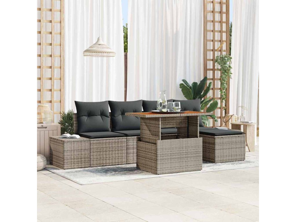 Sada zahradních pohovek s úložištěm 6 pcs Šedá Poly ratan 3358687