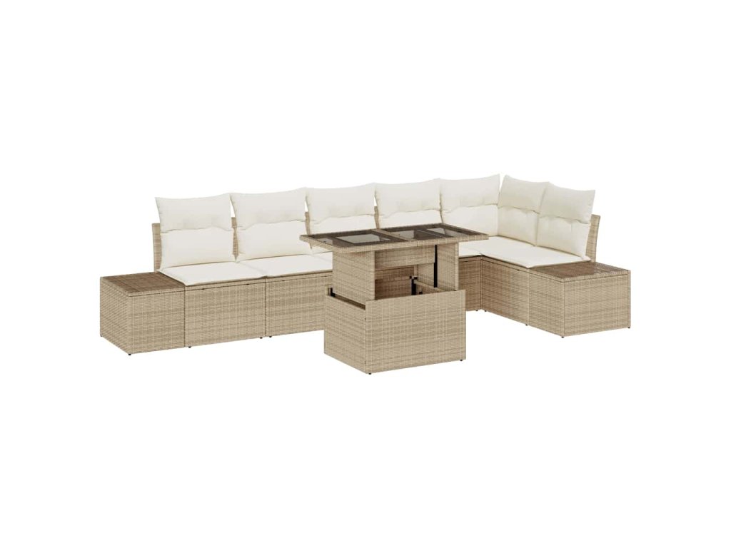 Sada zahradních pohovek s úložištěm 7 pcs Béžová Poly ratan 3357934