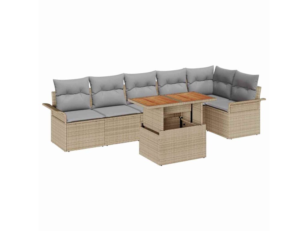 Sada zahradních pohovek s úložištěm 7 pcs Béžová Poly ratan 3358079