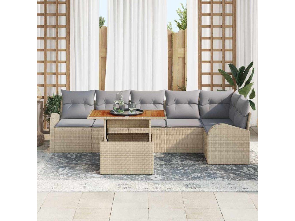 Sada zahradních pohovek s úložištěm 7 pcs Béžová Poly ratan 3358331