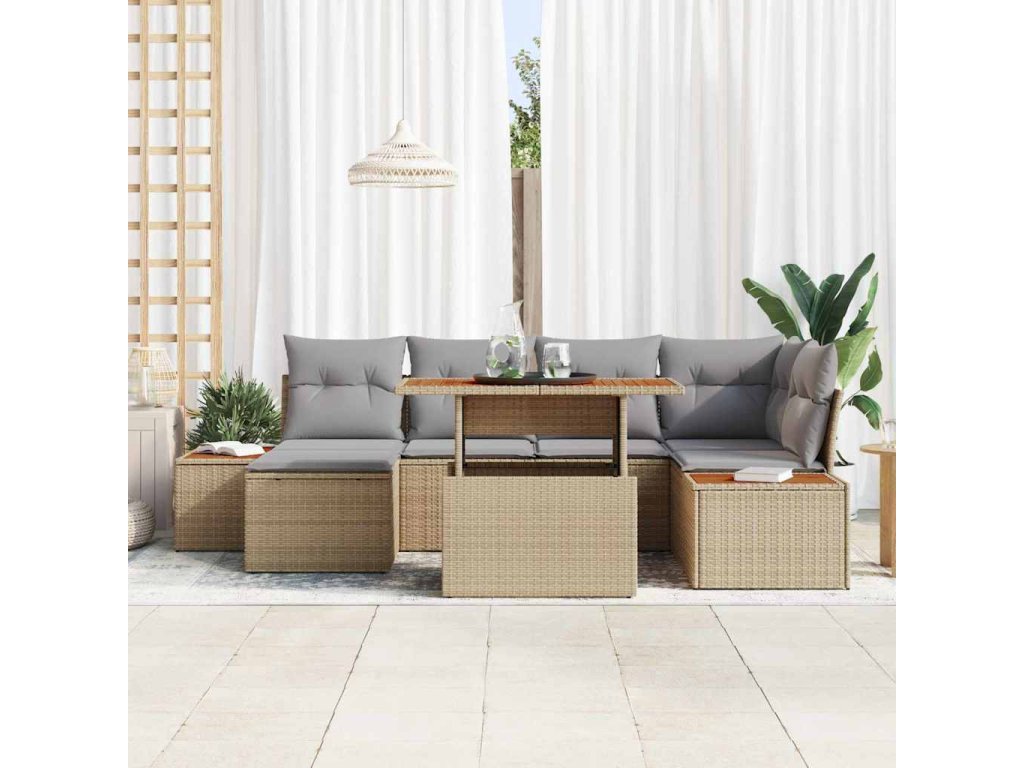 Sada zahradních pohovek s úložištěm 7 pcs Béžová Poly ratan 3358824